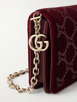 Crystal-embellished Velvet And Leather Shoulder Bag