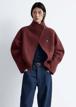Wool Mock Neck Short Jacket In Burgundy Dark Red