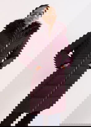 Heat Seal Puffer Belted Faux Fur Hood Longline Jacket
