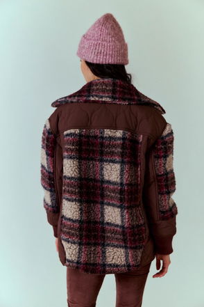 Borg Fleece Jacket In Burgundy And Blue
