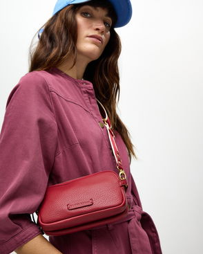 Alba Place Leather Medium Phone Cross Body Bag In Carmine