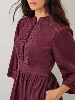 Jimena Corduroy Dress, Burgundy