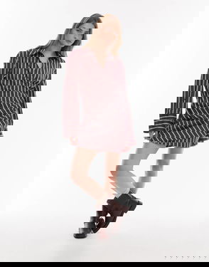 Ruche Side Min Shirt Dress In Burgundy Stripe