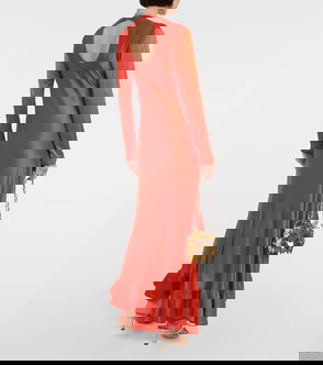 Caped Silk Midi Dress