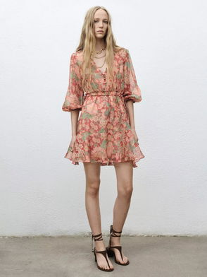 Babydoll Mini Dress With Pleated Bodice In Red Floral Print