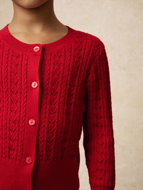 3-9 Yrs Wool-Cotton Pointelle Cardigan In Red