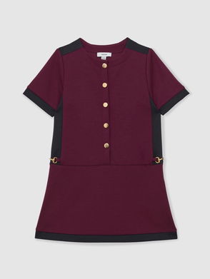 13-14 Yrs Premium Interlock Colour-Block Button Dress In Burgundy