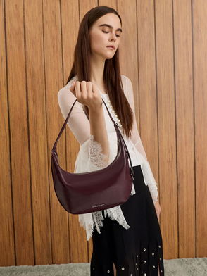Ebury Leather Curved Shoulder Bag, Claret