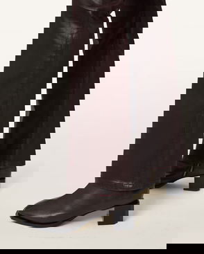 Cotton Pleat Front Wide Leg Jean In Dark Red