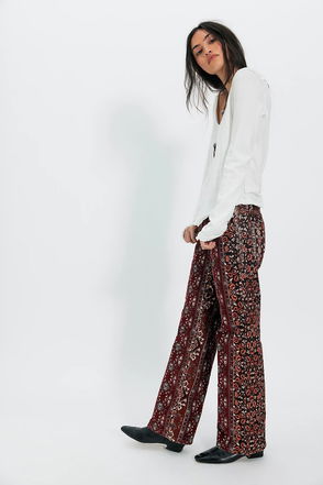 Siracusa Cotton Rich Velvet Wide Leg Jean In Burgundy