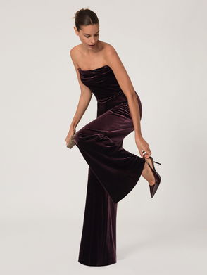 Velvet Drape Strapless Jumpsuit In Burgundy