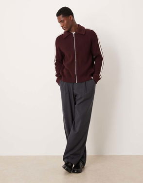 Jeans Stripe Knit Track Jacket In Burgundy And White