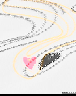 Vita Red Heart Pendant Layered Chain Necklace