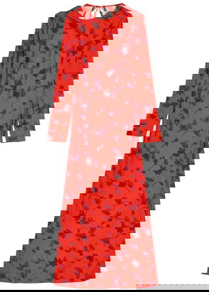 Rio Ruffled Embroidered Crepe Maxi Dress