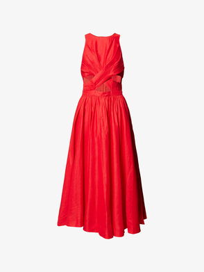 Rebellion Tuck Shoulder-Straps Linen Midi Dress
