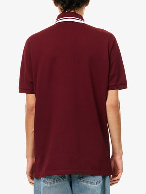 Cotton Mix Ribbed Short Sleeve Polo Shirt In Dark Red