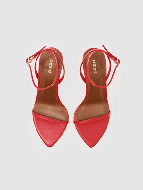Strappy Stiletto Sandals In Red Leather
