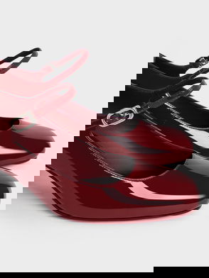 Flores Patent Gem-Strap Slingback Pumps