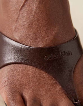 Jeans Leather Kitten Heel Thong Sandal In Burgundy