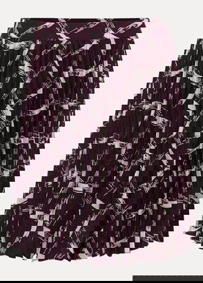 Pleated Printed Silk Crepe De Chine Midi Skirt