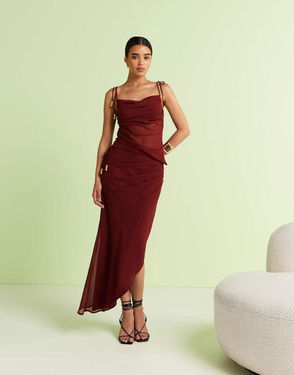 Sheer Chiffon Maxi Skirt With Volume Hem In Burgundy