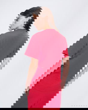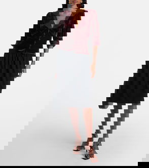 Jeans Jacquard Emblem Crop Shirt In Bright Red
