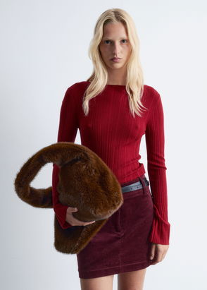 Libra High Neck Wool Rich Knit Top, Dark Red