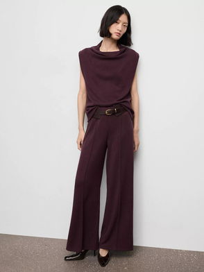Seam Front Knitted Trouser In Burgundy