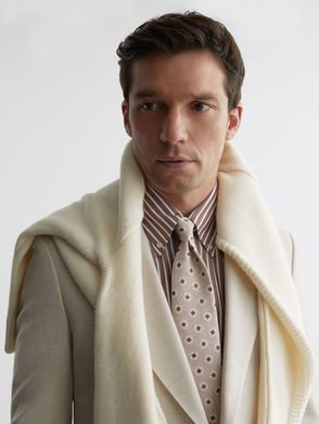 Cotton-Silk Square Medallion-Print Tie In Oatmeal / Chocolate Brown