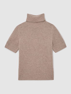 Cashmere Short-Sleeve Roll-Neck Jumper In Oatmeal Neutral