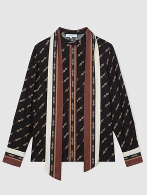 Chain-Print Tie-Neck Shirt In Black