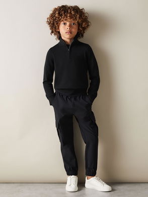 13-14 Yrs Merino Wool Half-Zip Funnel Neck Jumper In Black