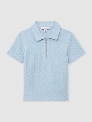 9-13 Yrs Textured Towelling Half-Zip Polo Shirt In Soft Blue