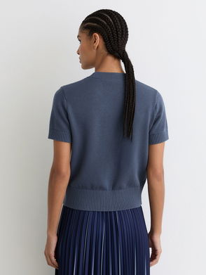 V-Neck Short-Sleeve Cardigan Cotton-Wool In Blue