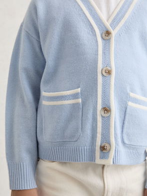 9-13 Yrs Wool-Blend Tipped Cardigan With Cashmere In Pale Blue