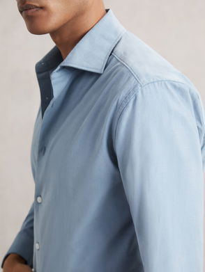 Slim Fit Cotton-Tencel Stretch Shirt In Soft Blue