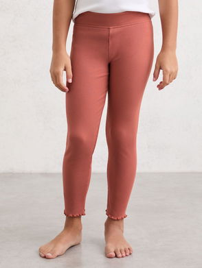 13-14 Yrs Stretch-Cotton Lettuce-Trim Leggings In Rose