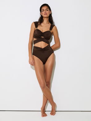 Wrap-Around Ruched Bikini Top In Chocolate Brown