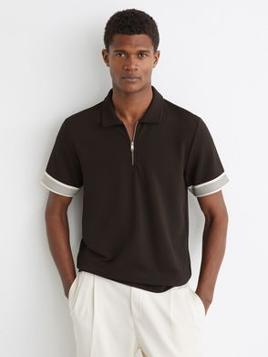 Sleeve-Trim Half-Zip Polo Shirt In Chocolate Brown