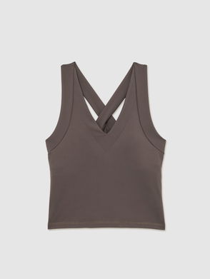V-Neck Cross-Back Sports Top In Taupe Brown