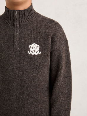 9-13 Yrs Monogram Relaxed Half-Zip Jumper Wool-Blend Unisex Fit In Chocolate Brown