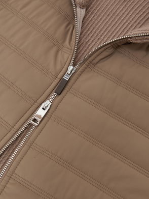 Quilted Rib-Knit Funnel-Neck Jacket In Taupe Brown