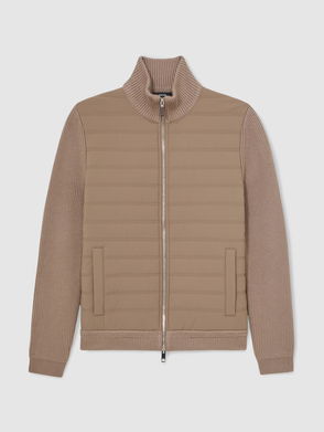 Quilted Rib-Knit Funnel-Neck Jacket In Taupe Brown