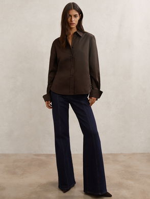 Cotton-Sateen Folded-Cuff Shirt In Chocolate Brown