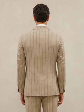 Atelier Wool Double-Breasted Blazer Pinstripe Classic-Fit In Mocha Brown