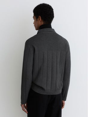 Wide-Rib Zip-Through Cardigan In Charcoal Melange