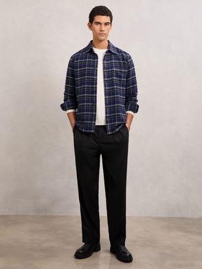 Check Button-Through Overshirt With Wool In Navy