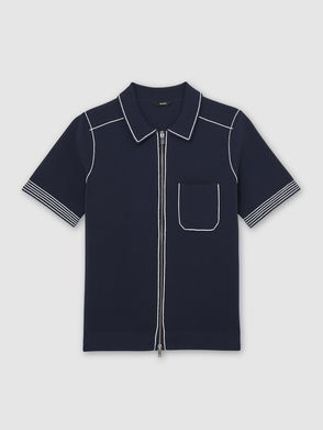 Stitch-Detail Zip-Through Knit Shirt In Navy