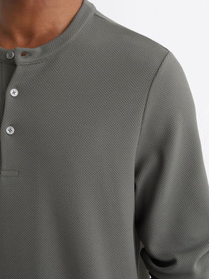 Textured Long-Sleeve Henley Shirt In Sage Green
