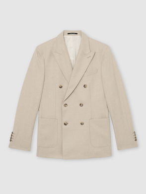 Flannel Double-Breasted Blazer Tailored-Fit In Oatmeal Brown